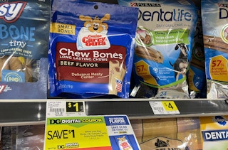 Stock up on dog treats with this easy deal at Dollar General. Download the DG app to clip a $1/3 coupon for Canine Carry Outs. Since they’re priced at $1 each, the coupon will make them just $0.67 per bag.