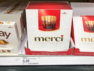 Combine a new coupon with a rebate to get this rare deal on Merci Chocolates at Target. Look in the Ibotta app (here) for the combo rebate. You’ll get $2.99 back when you buy one box of Merci Finest Chocolates and one greeting card. Target sells greeting cards starting at $0.99.