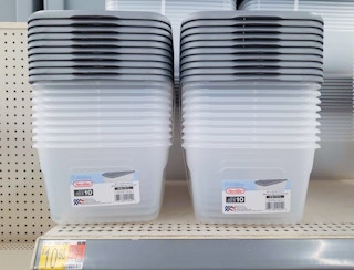 We found a 10-count set of six-quart storage containers for just $9.48 (or $0.95 each). This price is significantly lower than the 12-count set we found on Amazon for $31.09 (or $2.59 each). Save even more when you buy a 40-count set of 1.5-gallon storage containers for just $37.68 (or $0.94 each).