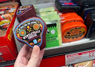 Create the ultimate Halloween cheese plate with Aldi’s new Emporium Selection Halloween Cheese. There are four varieties to choose from including Bat Knit Crazy Cheddar, Freaky Franken Sage Derby, and more. Pick them up for a limited time for just $3.99 each.