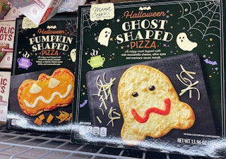 Need an easy dinner for pre-trick-or-treating? Or how about the perfect accompaniment to a Halloween movie night? Look no further than Aldi, where Mama Cozzi’s ghost-shaped and pumpkin-shaped pizzas have just arrived. Find them in the freezer section for just $4.99 each.