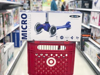 Combine a sale price with a toy coupon to save on a Micro Kickboard Scooter at Target. Before you shop, clip the 25% off coupon from the Target app (here). This three-wheeled scooter has a 120-pound weight limit and is the perfect size for young children. Plus, the front wheels feature motion-activated LED lights.