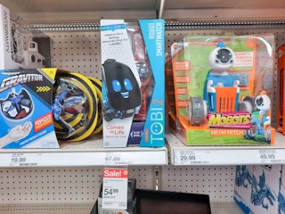 Save on Little Tikes Tobi Robot Smartwatches at Target. The blue and pink smartwatches are regularly priced at $49.99 in stores, but the price dropped down to $37.49 online. Use a toy coupon located in the Target app (here) to save an extra 25%. You can’t price match in stores at Target with a Circle offer, so you’ll want to shop online to get the best price.