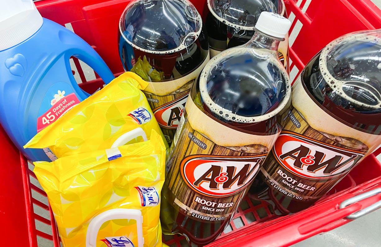 Save 50% on household products and drinks just by using your phone at Family Dollar this week. Open the Smart Coupons app to clip digital coupons for Suavitel and Lysol. At the store, pick up four bottles of A&W root beer, on sale for $1 each. Also, buy one bottle of Suavitel fabric softener and two flatpacks of Lysol disinfecting wipes.