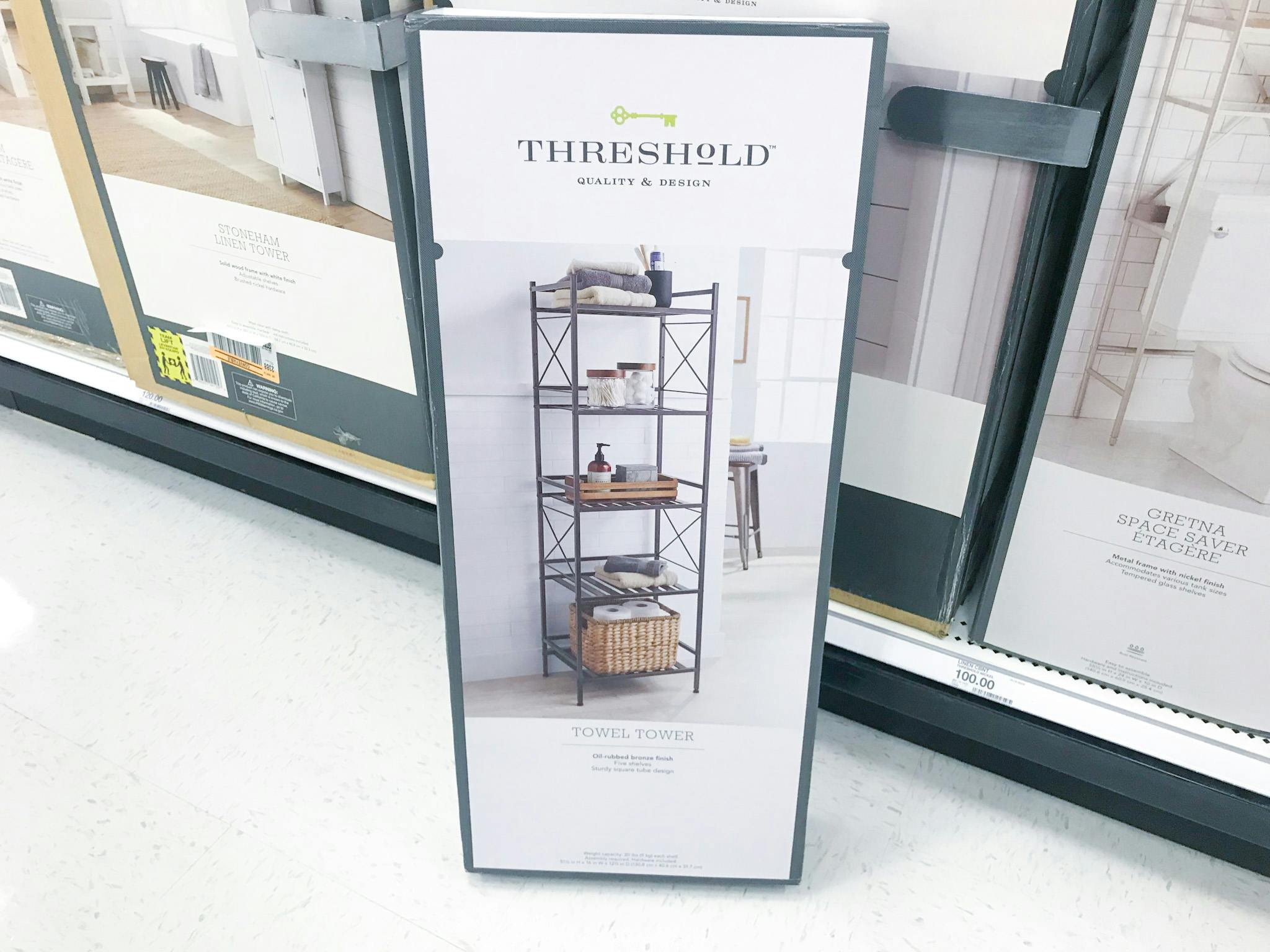 Save 50% on this bathroom furniture at Target. Shelving units, wall shelves, and over the toilet etagere from Threshold is on sale starting at just $15.