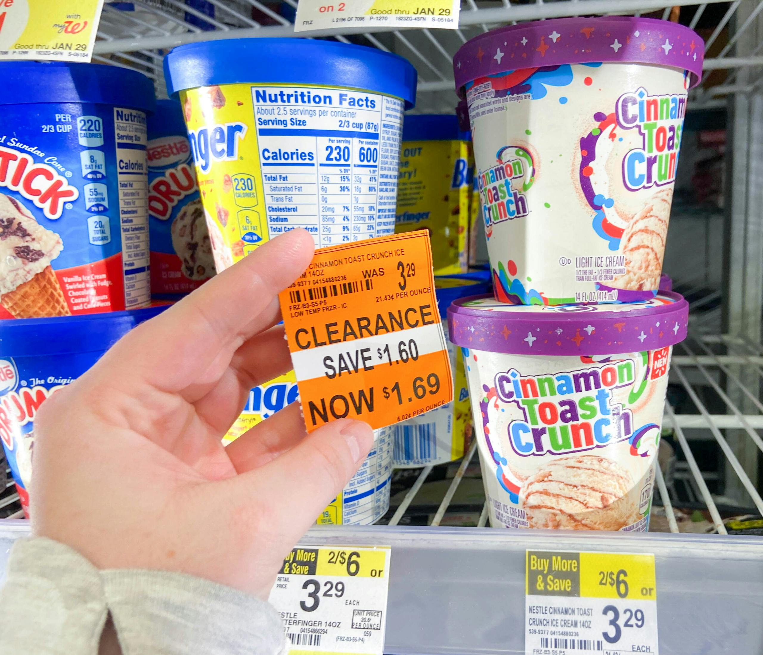 The next time you stop by Walgreens, be sure to check out their frozen food section. We found ice cream on clearance for up to 50% off. This included popular brands such as Breyers, Nestle Drumstick, and Cinnamon Toast Crunch.