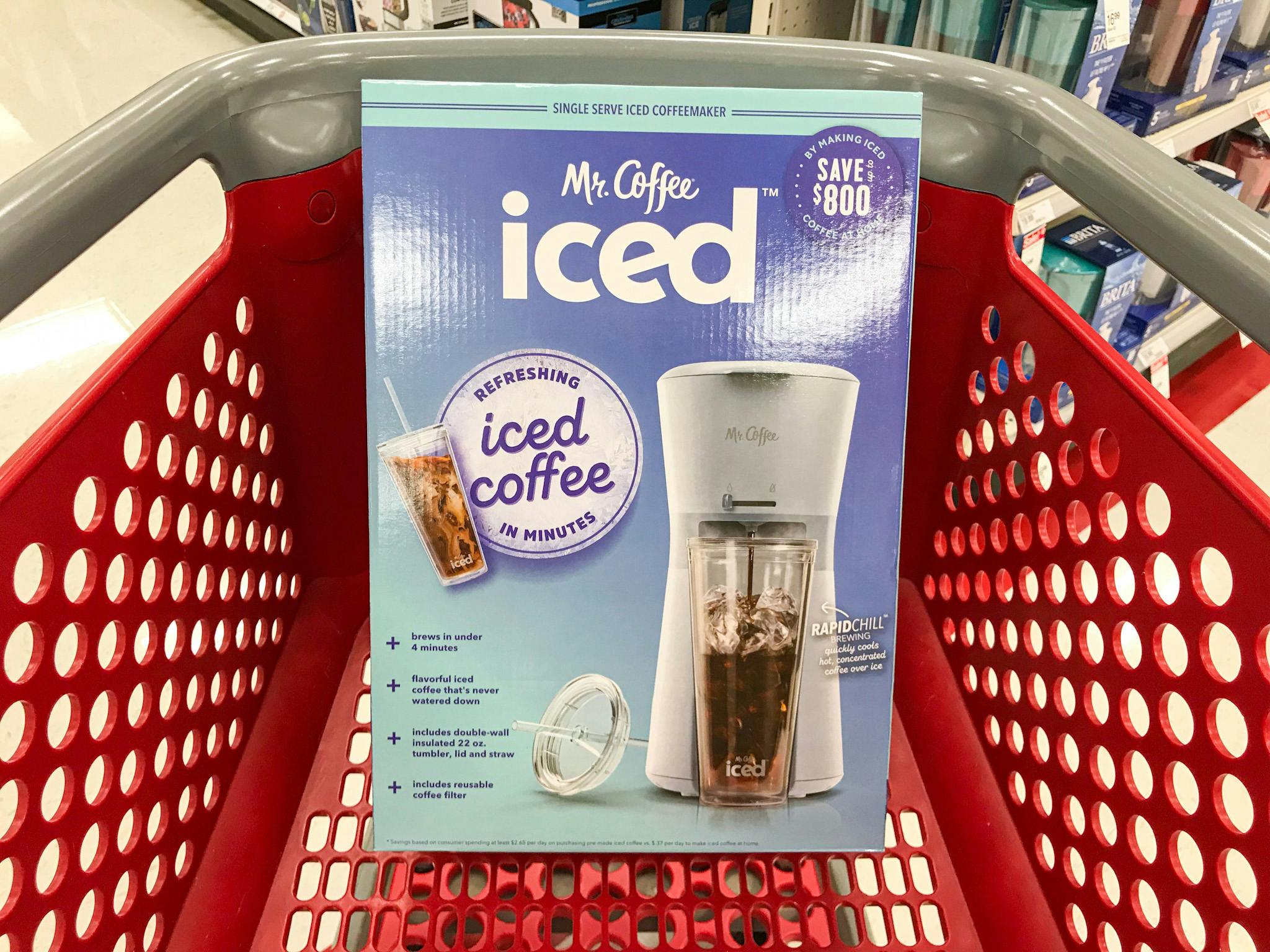One of our favorite kitchen deals is back at Target. The Mr. Coffee Iced Coffee Maker is available in five colors on sale for $24.99. Plus, your purchase includes a free tumbler and reusable coffee filter.