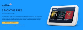 This Prime Day offer is still live. Through July 31, get online to Amazon for a free 3-month trial of Audible. You can stream and download thousands of podcasts and audiobooks with Audible. You’ll get unlimited listening, new titles every week, and can listen on all your devices.