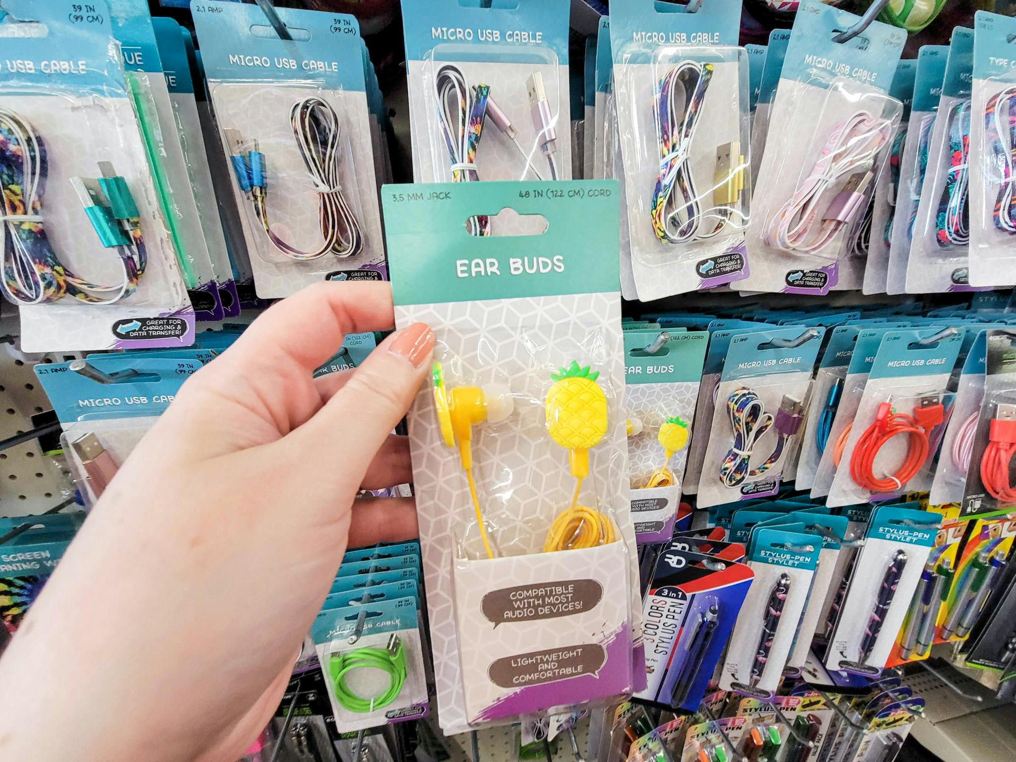 If earbuds are on your back-to-school checklist, make sure to stop by Dollar Tree. We found a variety of colors and designs, all for only $1.25 each. We recommend shopping in store for these items, as the ones sold online must be ordered in larger quantities.