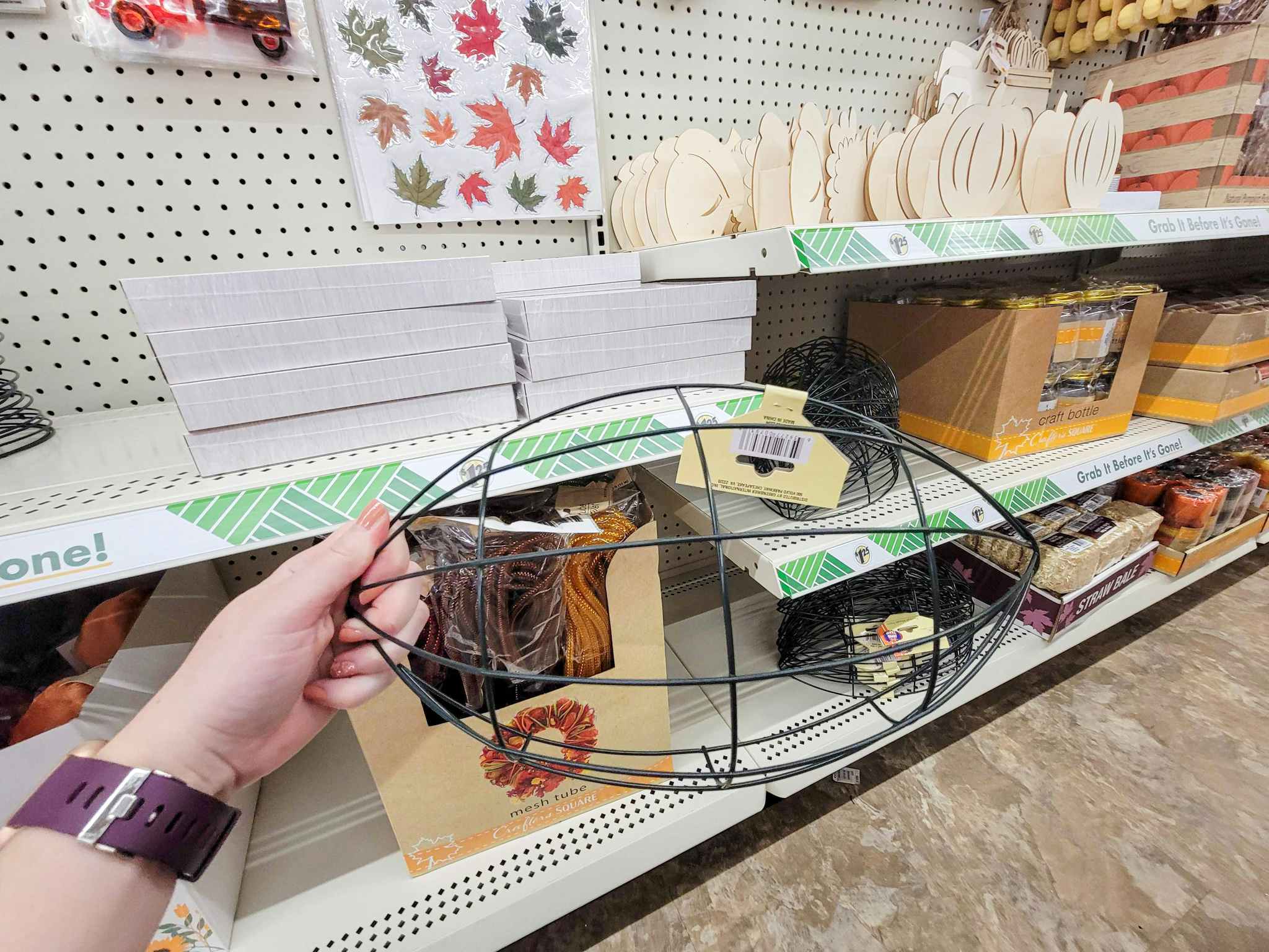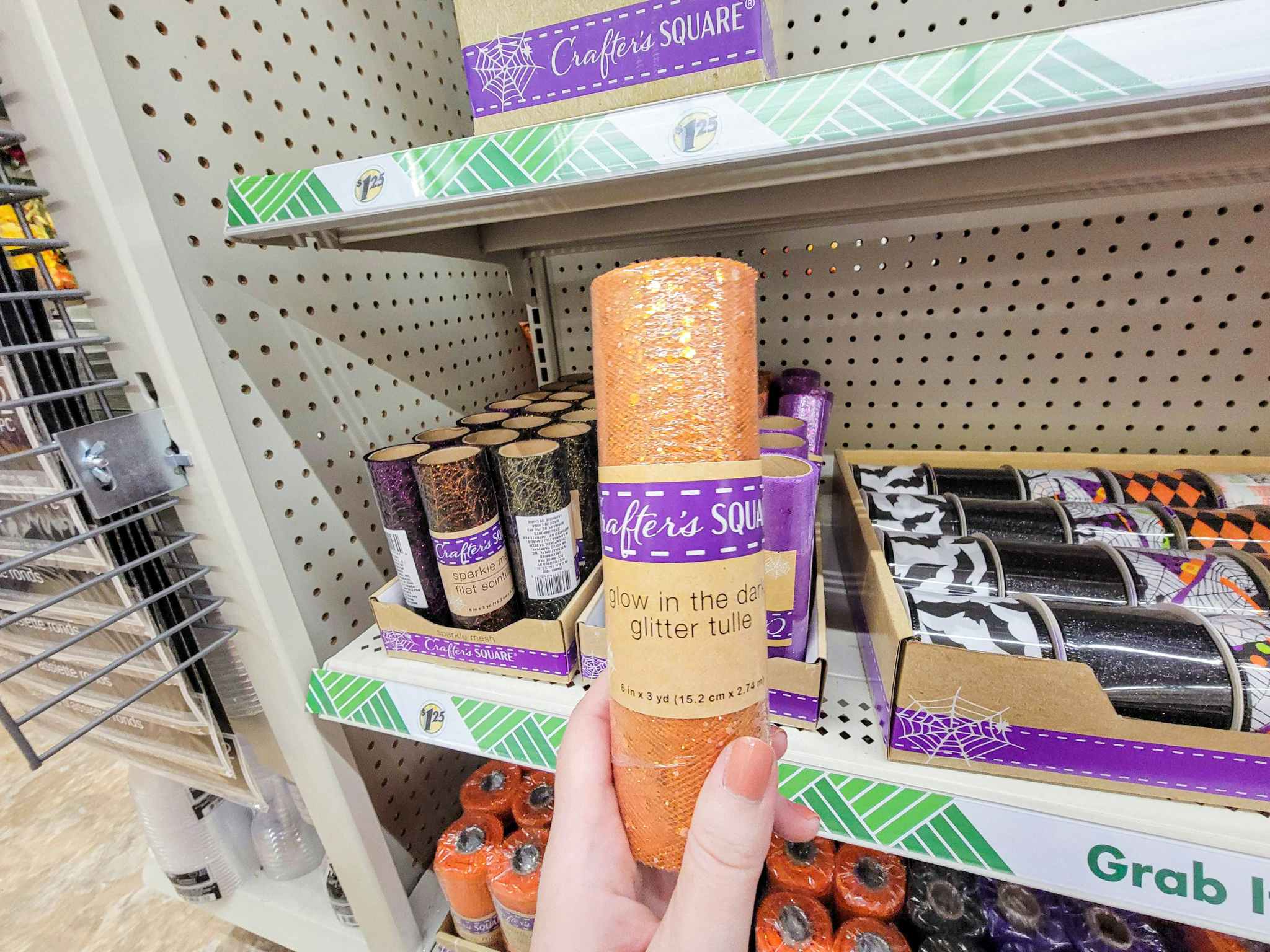 Dollar Tree is the place to go for Fall and Halloween crafting supplies. We found wreath forms, mesh, tulle, painting kits, and so much more for only $1.25 each. We recommend shopping in stores for these items, as the items sold online must be ordered in larger quantities.