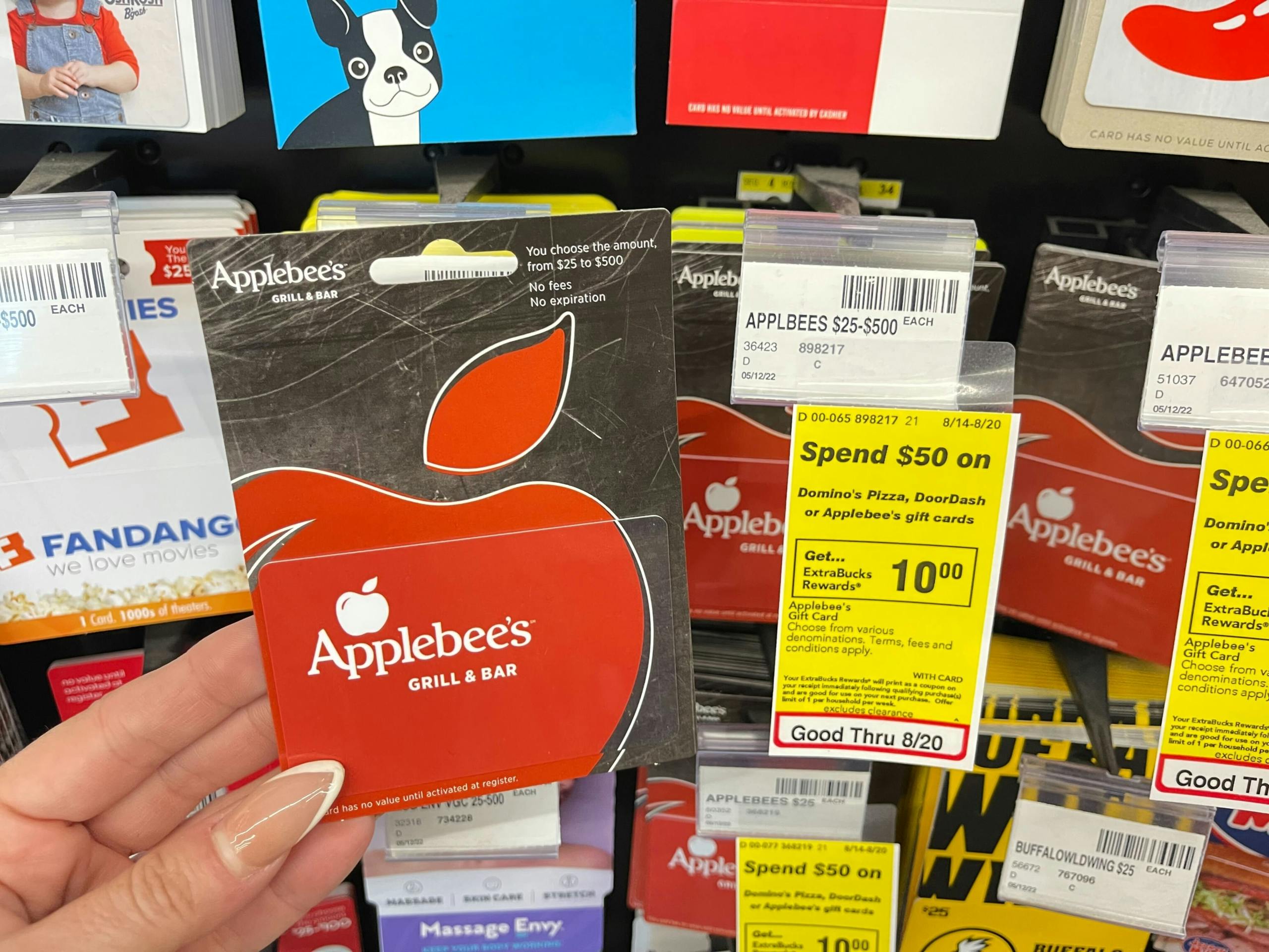 Eligible gift cards include Doordash, Applebee’s, and Domino’s. Remember, you can mix and match as long as you get $50 in eligible gift cards. You’ll pay $50 at checkout but get $10 back in ExtraBucks. That brings your total down to just $40.