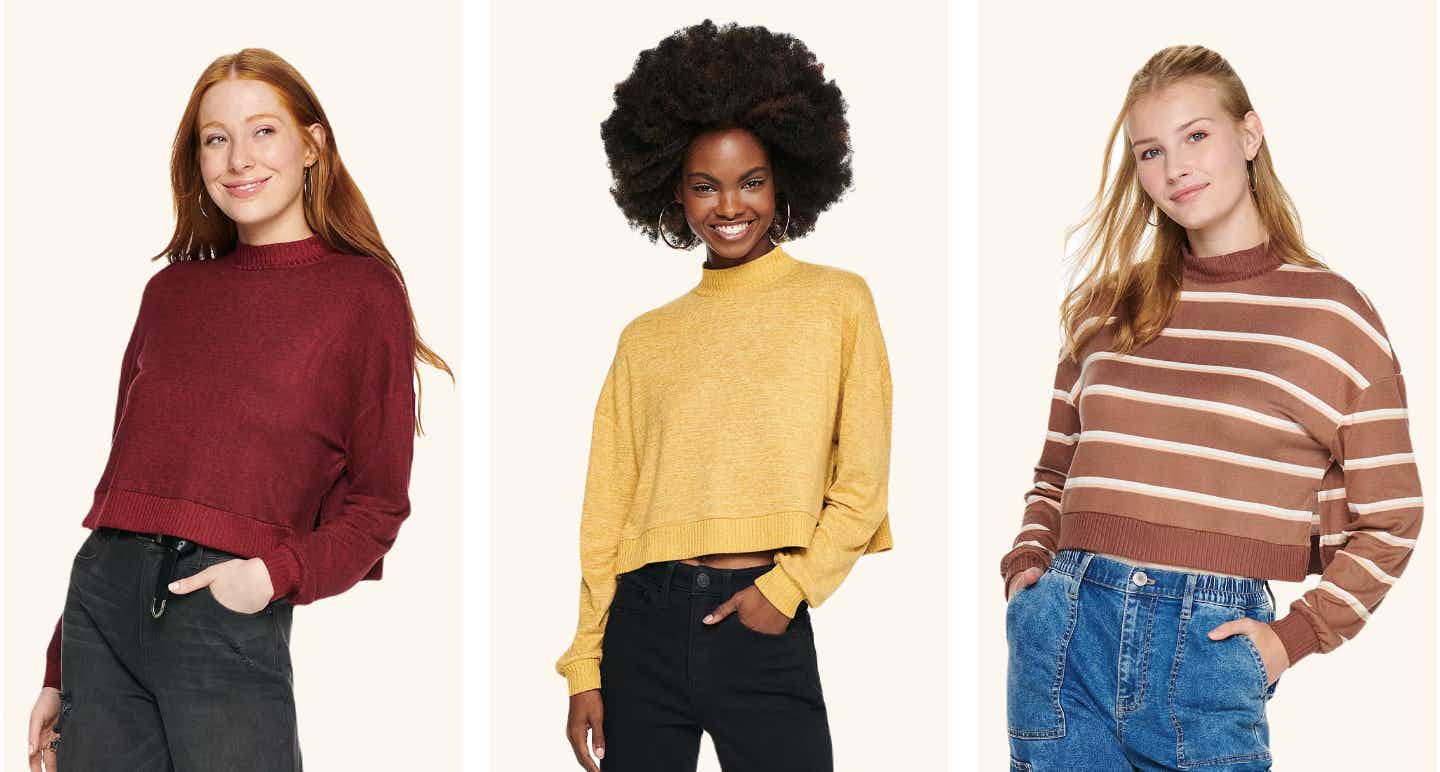 Everyone’s favorite juniors’ sweater pullovers are marked down by as much as 75% at Kohl’s. Take advantage of these clearance prices, plus an additional 20% off your order with coupon code SHOP20. You’ll spend as low as $7.20 for a juniors’ fall essential top.