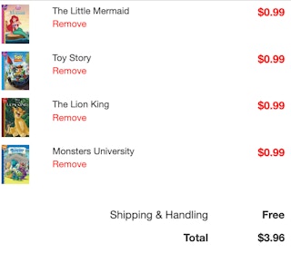 Bottom-line cost: Pay $3.96 for four books ($0.99 each). No sales tax.