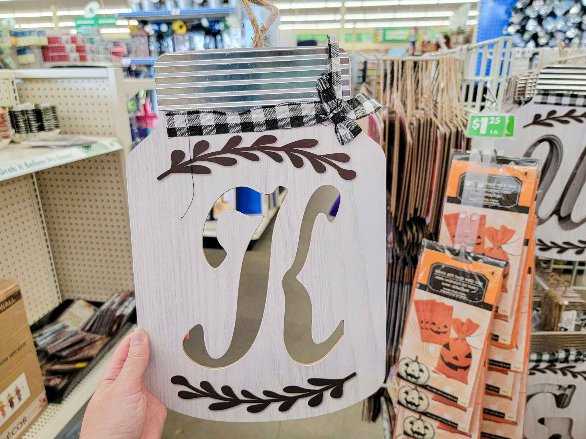 We found new farmhouse decor at Dollar Tree. These Mason Jar-Shaped Tags with Initials are just $1.25. We recommend shopping in stores for these, as they must be ordered in larger quantities online, and you can’t choose which letters you receive.