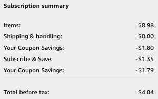 The savings don’t stop there; clip the coupon for an additional 20% off your Subscribe & Save order. Your cost could be as little as $4.04.