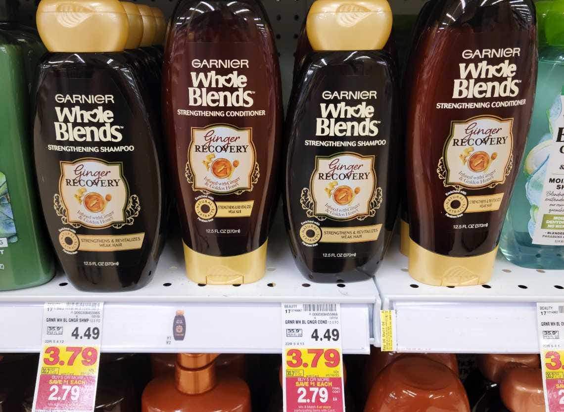 Shop the Mega Savings Event at Kroger through Jan. 10 and get Garnier Whole Blends shampoo or conditioner for just $1.29 per bottle. If you don’t have an account yet, sign up for a Kroger Plus Shopper’s Card and scan it at checkout to receive the lowest advertised prices, get instant savings, and earn fuel points on your purchases. Be sure to mix and match five or more included items in order to receive the $1 savings per item. To use the $3 newspaper coupon, you’ll need to purchase two bottles of Garnier Whole Blends hair care.
