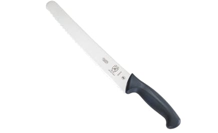 “I bought this knife because America’s Test Kitchen gave it an excellent review. The 10 inch blade works really well when cutting homemade loaves or artisan boules. The blade is very sharp and cuts the bread rather than tearing it or mashing it down. I find the handle feels comfortable in my hand. I prefer this knife, as opposed to my previous bread knife, a Sabatier with an 8 inch blade.”