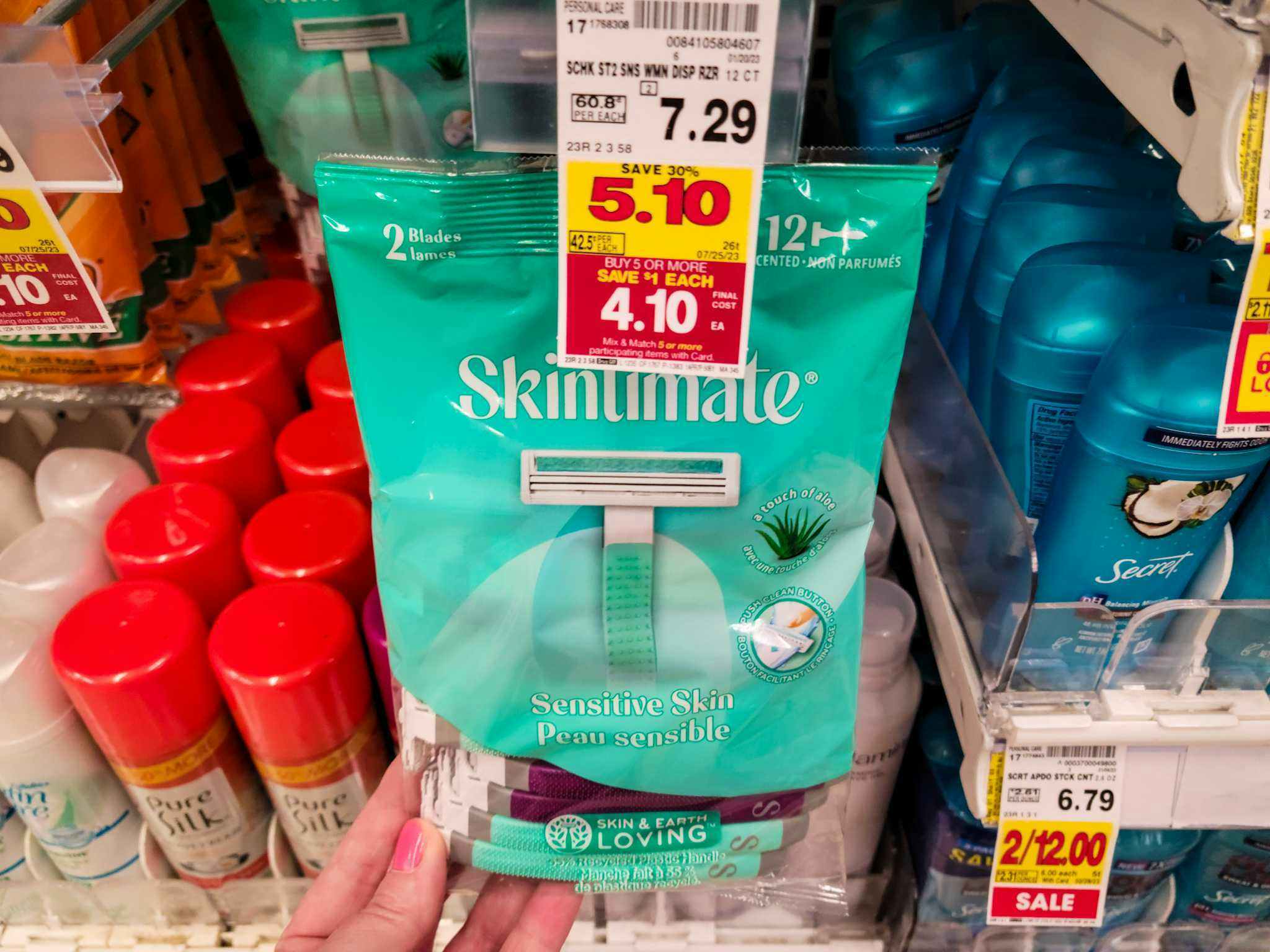 Score a pack of Skintimate disposable razors for just a dime when you combine the Mega Sale price with a Kroger digital coupon. To receive the lowest advertised prices and instant savings, you’ll need to sign up for a Kroger Plus Shopper’s Card. Scan the Shopper’s Card during checkout and the discounts and any applicable coupons you’ve loaded to your account will be applied. To load the Skintimate razors coupon, visit Kroger.com or download the store app. There’s a limit of one per account. After the Mega Sale pricing and the coupon, you’ll pay only $0.10 for a pack of razors.