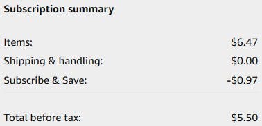 If you’re new to Subscribe & Save, check out our easy guide on how Subscribe & Save works. Opt in today for a discount of 5%, or a discount up to 15% when you subscribe to five or more items in one month to a single address. Plus, you can cancel Subscribe & Save in just a few simple steps with no fee if you decide the program isn’t for you.