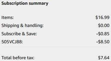 New to Subscribe & Save? Take a few minutes to read our quick and easy guide to how Subscribe & Save works. This program rewards you for opting in to recurring subscriptions on your favorite eligible items. On this item, you can save an additional 5% on the sale price when you subscribe to five or more recurring subscriptions in one month to a single address. Plus, you can cancel Subscribe & Save in just a few simple steps without any fees if you don’t want to continue past the initial discount.