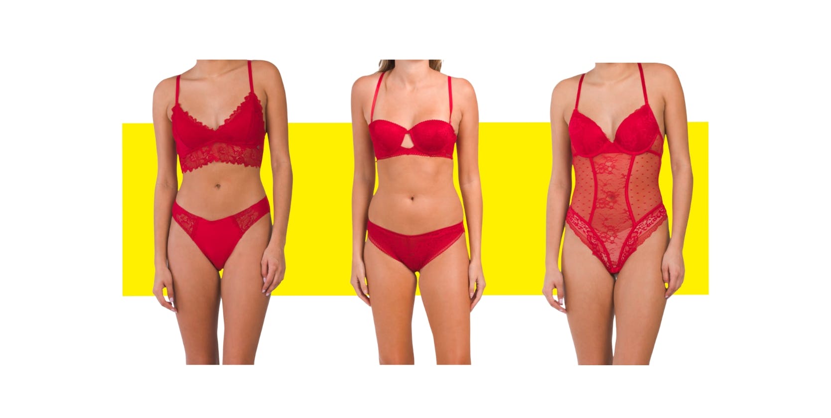 Shop at T.J.Maxx where I found various kinds of red lingerie apparel that would be perfect for Valentine’s Day. Score a red lace bodysuit for just $16.99 or a red 2-piece bra and bottom set for just $12.99.