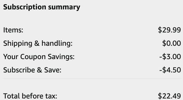 To snag the best deal possible, clip the $3 off coupon and save up to 15% with Subscribe & Save. Here’s how Amazon Subscribe & Save works. You’re under no obligation to continue your subscription once this deal has shipped; check out how to cancel Amazon subscriptions. The final price will be as low as $22.49.