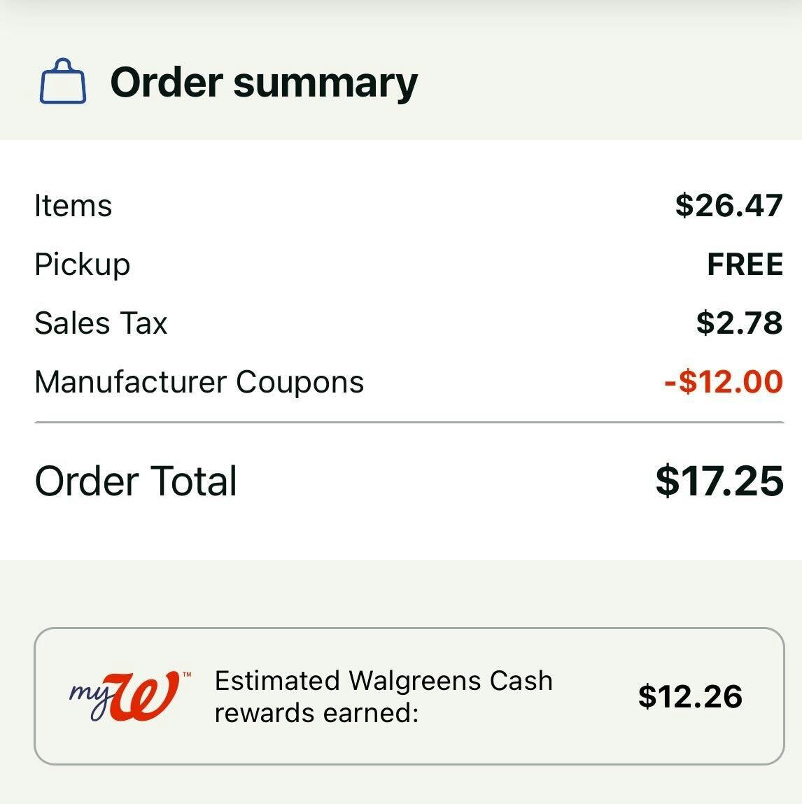 Here’s the deal: Purchase one Skintimate razor priced at $9.49, one Schick razor priced at $9.99, and one Schick Hydro Silk Touch-Up razor pack priced at $6.99. Your cart will add up to $26.47, allowing you to qualify for both promotions. Next, $12 in digital coupons will come off your total, dropping your out-of-pocket cost to $14.47. After you make your purchase, you’ll receive $12 in Walgreens Cash to your account. Once you factor in the rewards, each pack comes out to $0.82. You can do this deal online or in stores through Feb. 18. I’d recommend doing the deal online, since prices may be higher in stores.