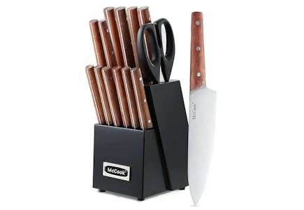 Take a look at the McCook 18-Piece Knife Block Set available for purchase on Amazon. This set is available for the cost of $64.68. However, you can pay much less on this knife set by clipping the Amazon coupon for 70% off. You’ll end up paying only $19.40, meaning you’ll save a total of $45.28.