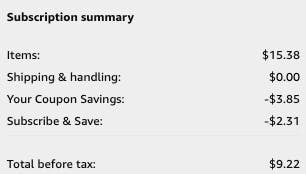 - Select Subscribe & Save before checkout for 5% or up to 15% off. Discounts may vary by account, and your first order will get you a minimum discount of 5%. When you have five or more subscriptions shipped to the same address, you’ll get a maximum discount of 15%.