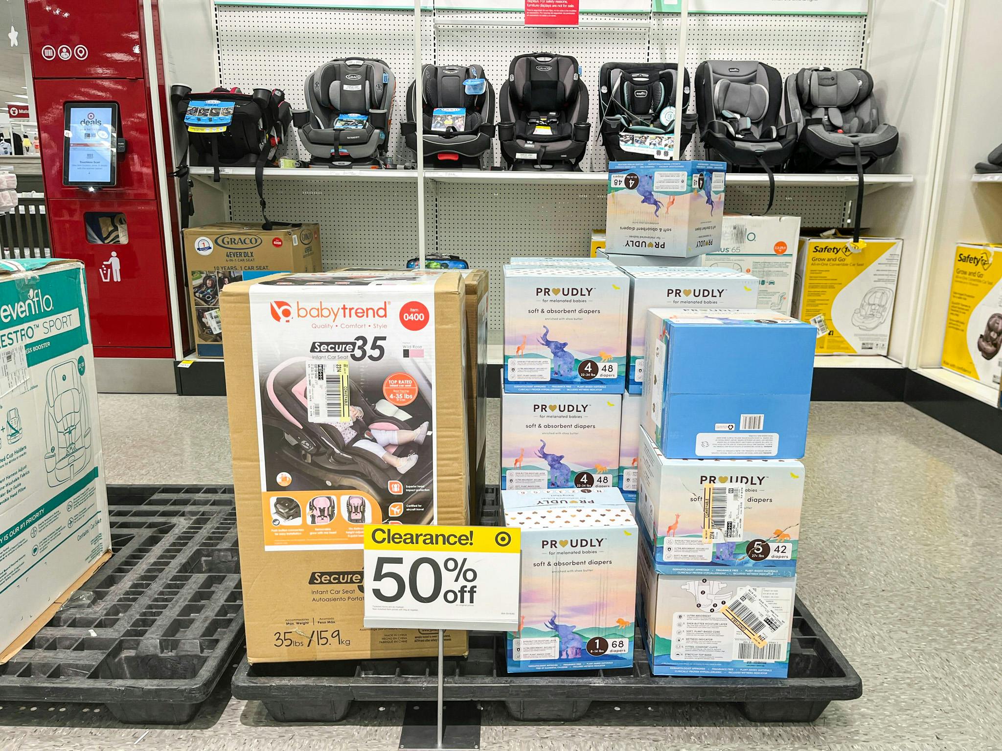 My store had five to 10 of the Graco 4Ever car seats for 50% off. Some of them are in the car seat aisles, and the rest were in the baby swing section. Scan them at a price-scanner on the aisle endcap if you’re unsure about the price.
