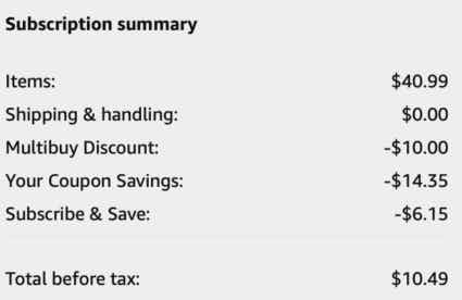 To score a low price on this item, you can use Subscribe & Save to get 5% off your order, or get 15% off when you subscribe to five or more items. Then clip the Amazon coupon for 35% off with Subscribe & Save. As a bonus, select accounts will automatically score $10 off when they add this item to your cart. You’ll pay as low as $10.49.