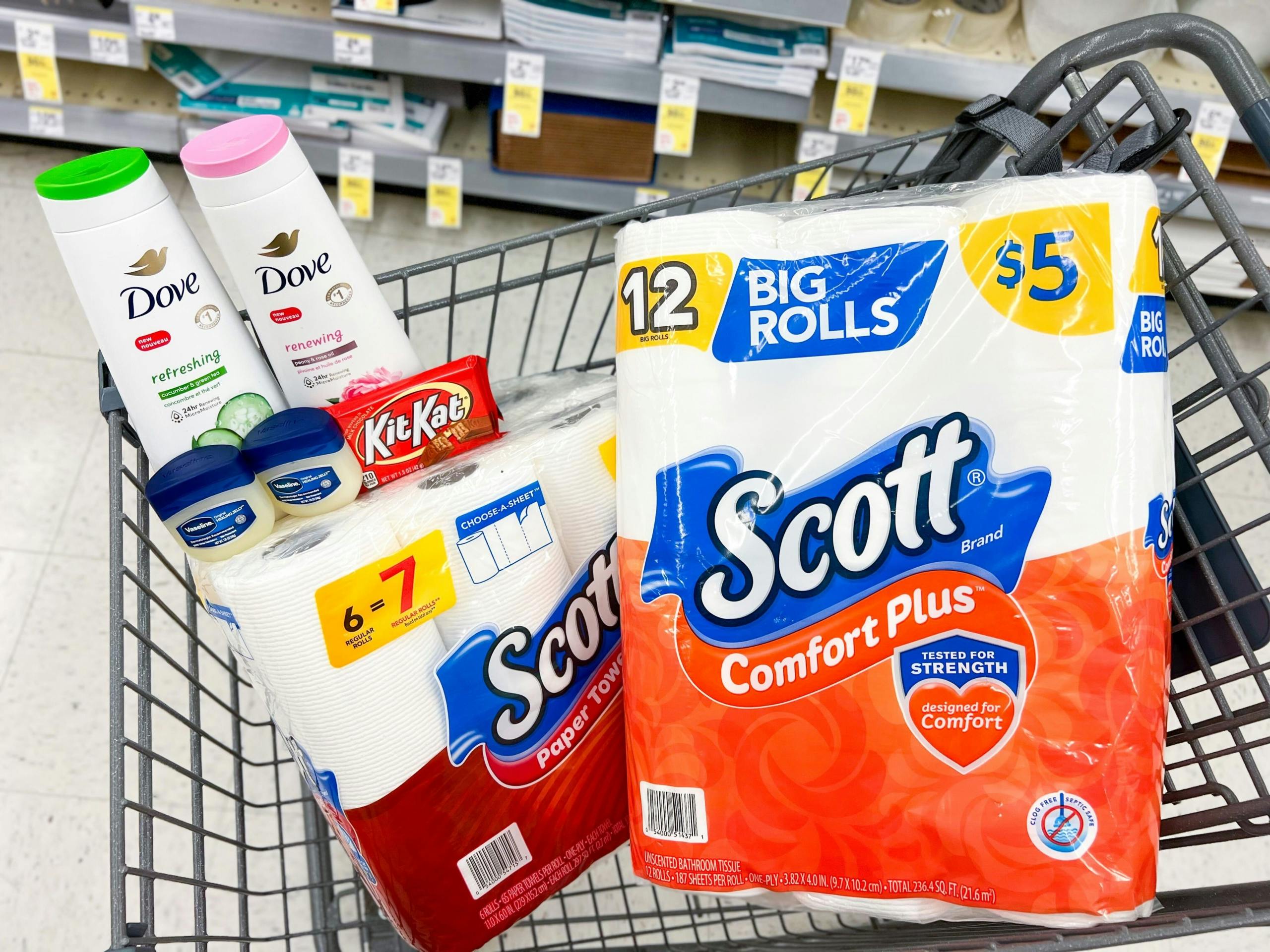 Additionally, you may be eligible for a digital spend booster. Check the coupons section of your account. After purchase, submit your physical receipt for a Scott paper towels $0.75 rebate through the Fetch Rewards app. You’ll also receive $4 in Walgreens Cash for buying two bottles of Dove body wash.