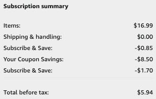 Amazon Subscribe & Save is a program that’s designed to simplify your shopping so you’ll save time and money. You can schedule regular deliveries of products you use often so you’ll never run out. Choose weekly or monthly deliveries depending on how often they last. Browse these other Subscribe & Save deals to find more savings on everyday items.
