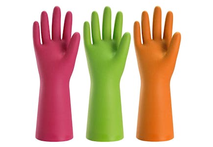 You’ll pay as little as $7.49 for three pairs of rubber gloves in three colors.