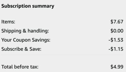 If this is a product you use regularly, consider scheduling regular deliveries with Amazon Subscribe & Save. If not, you can enter a delivery schedule to get the discount and try it out. You may cancel an Amazon subscription at any time; you’re under no obligation to keep the subscription. Just be sure to do so after your package has been shipped so you won’t have to forfeit any discounts.