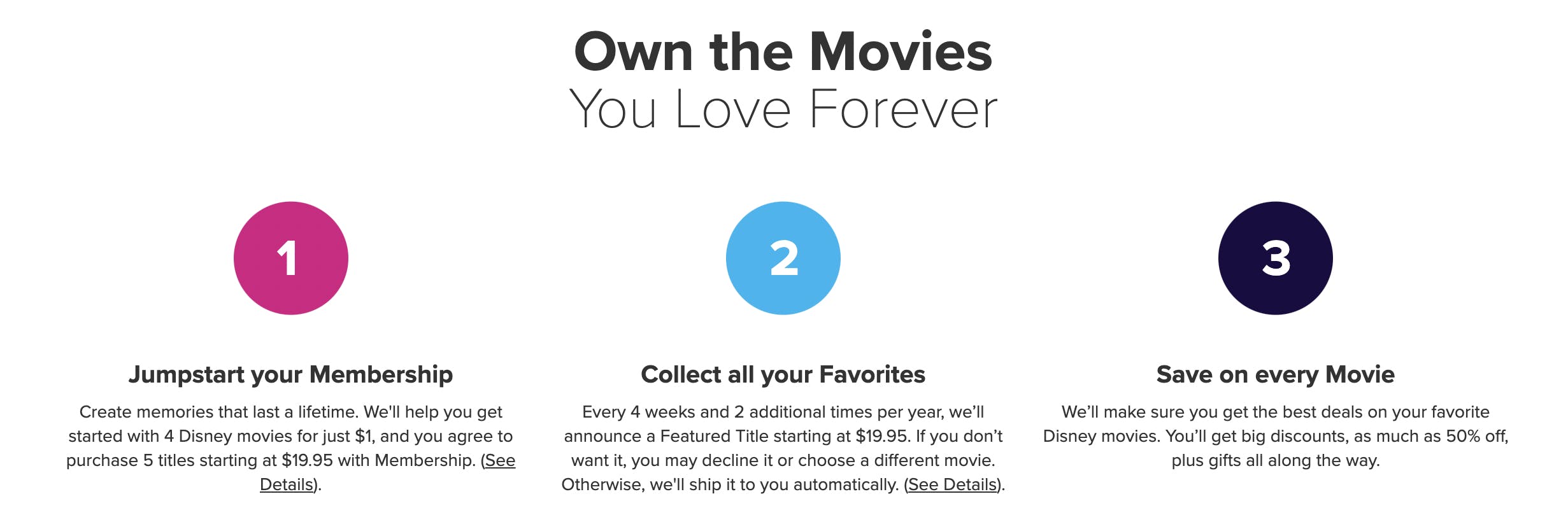 Sign up for Disney Movie Club and get your first four movies for only $1, plus free shipping.