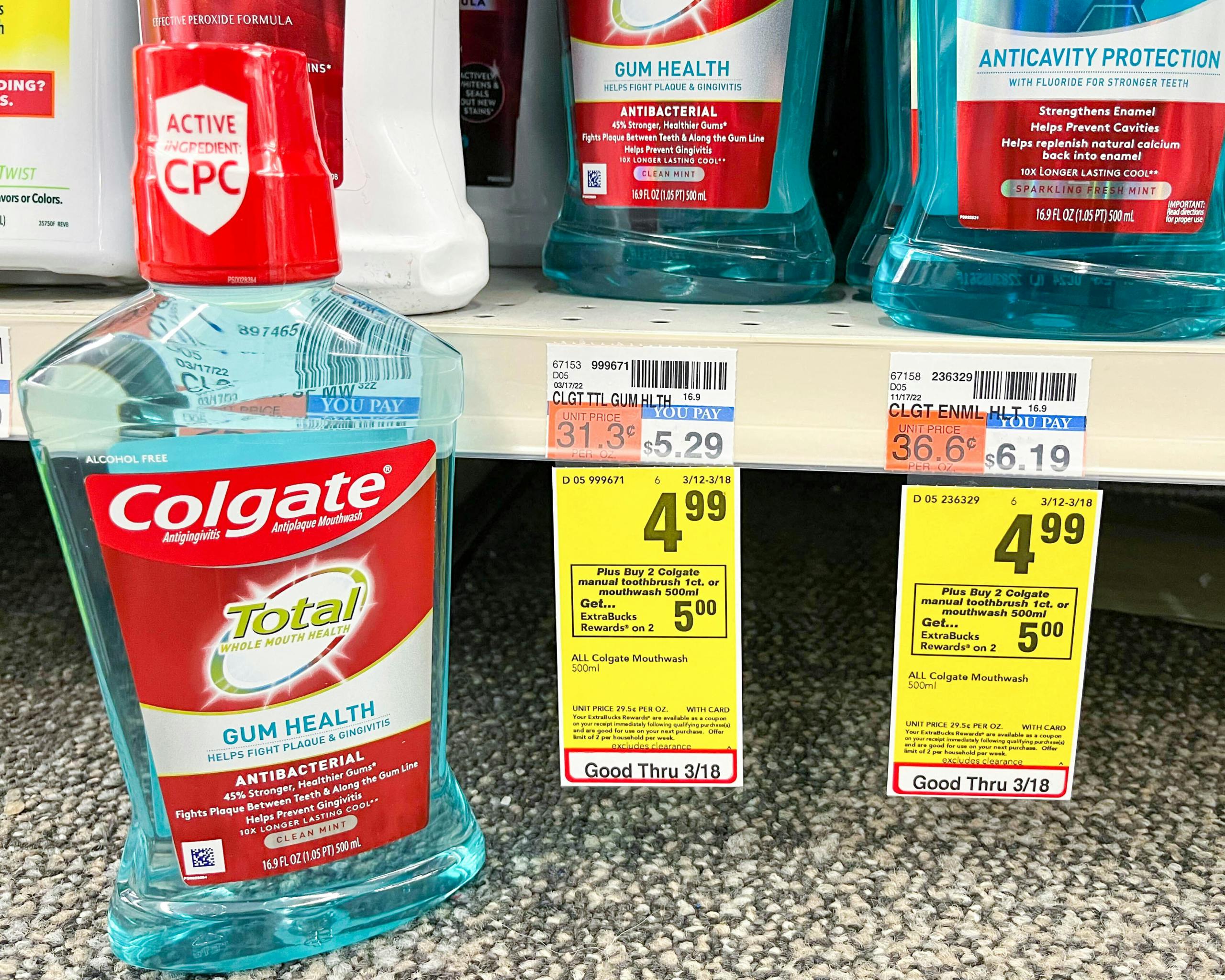 CVS is currently having a sale and promotion on Colgate Mouthwash. When you buy two bottles of Colgate mouthwash on sale for $4.99 each, you’ll receive $5 ExtraBucks. To access this promotion, you’ll need to sign up to be an ExtraCare member. Save more when you clip the digital coupon in your CVS account for $1/1 Colgate mouthwash. You can also print a $0.75 coupon on Colgate’s website. Once both coupons apply, you’ll pay $8.23 at the register and receive $5 ExtraBucks, making your final price $1.62 each. This deal is available through March 18.