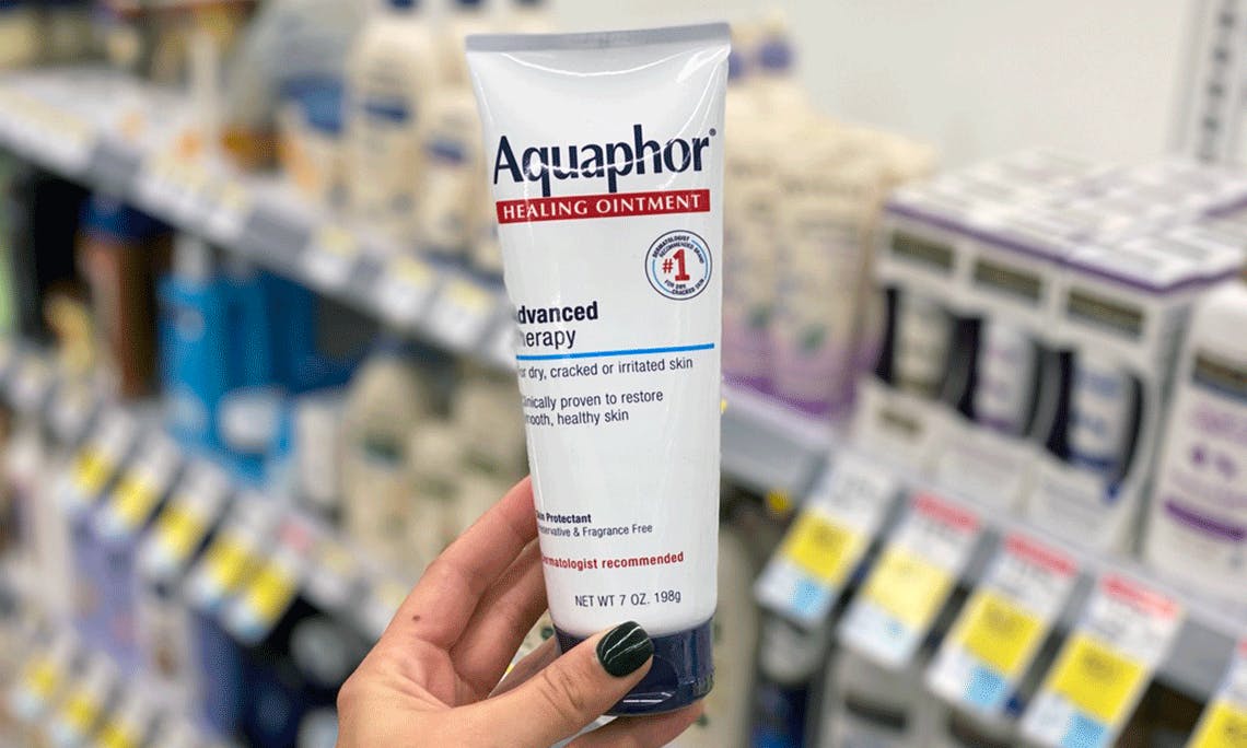 “aquaphor never fails. I use it for my lips but I have also started using it as a base before I apply my makeup and it gives a nice glass like finish to my face makeup. it also seems to have helped with my skin”