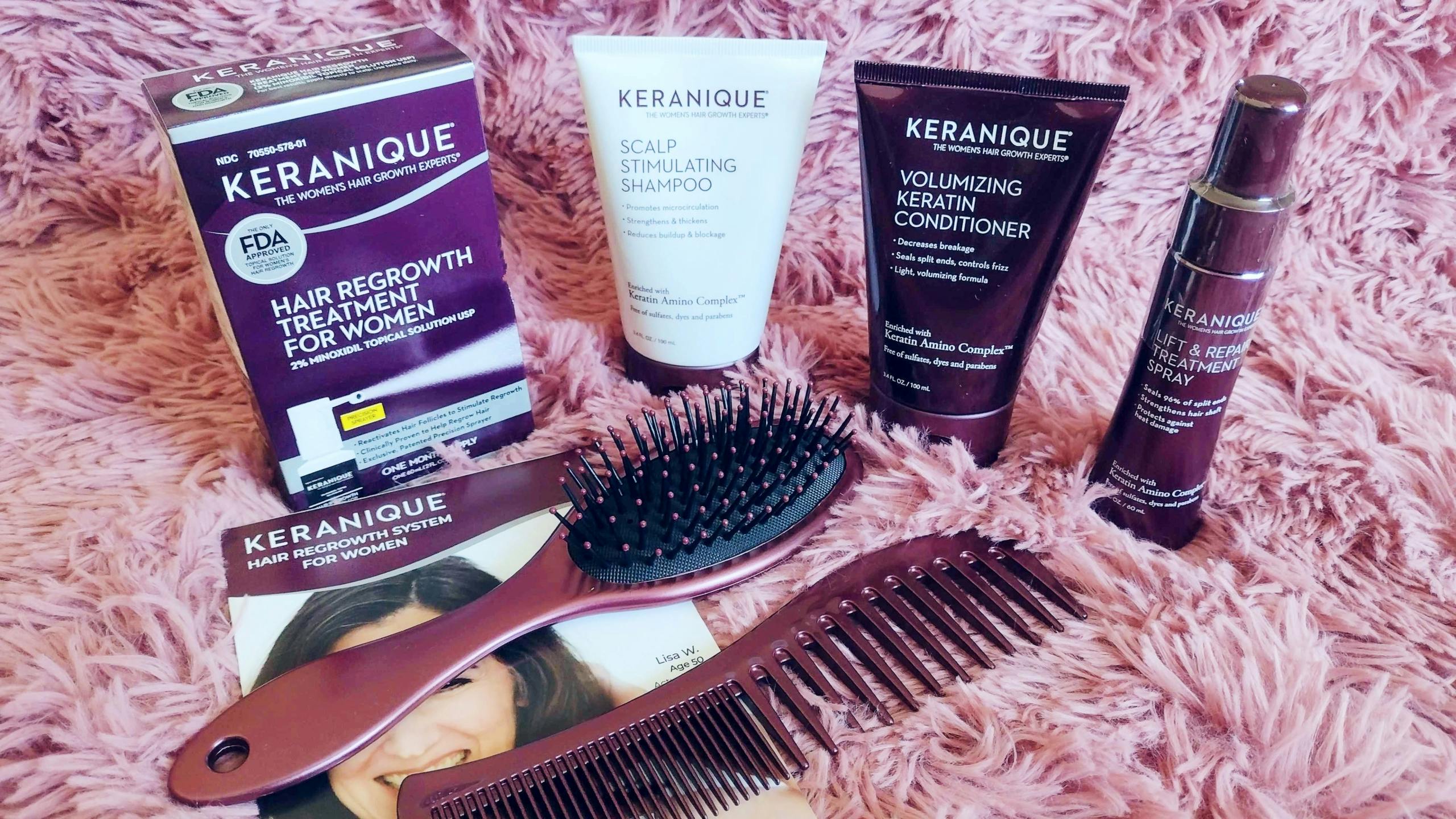 Keranique is a brand that makes hair care products for women who have thinning hair or hair loss. They have different kinds of products like shampoo, conditioner, hair regrowth treatments, styling products, and supplements to help women achieve thicker and fuller-looking hair.