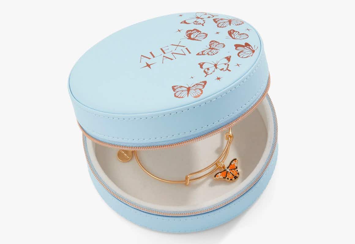 Plus, spend $45 or more on Alex and Ani products at checkout and score a Butterfly Jewelry Case for just $15, regularly $35.