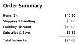 Be aware that discounts will vary by account and product. Your first order will get a minimum discount. Once you have five or more subscriptions shipped to the same address, you’ll get the maximum discount.