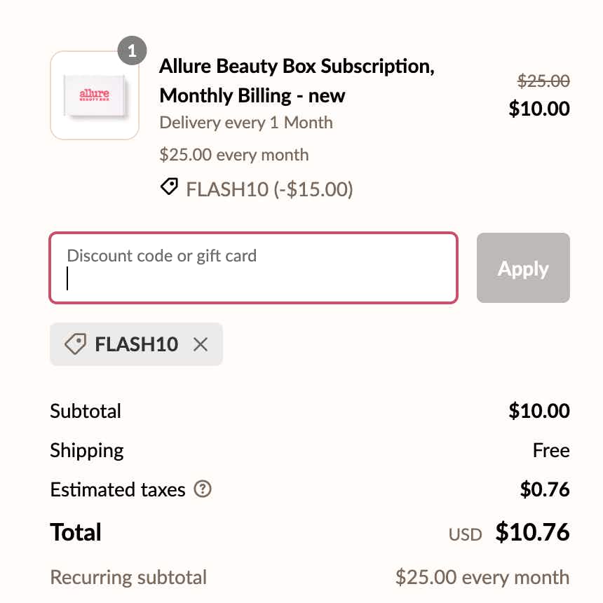 - Use our link to go to AllureBeautyBox.com.