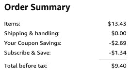 Amazon Subscribe & Save is an easy-to-use service that allows you to set up automatic, recurring deliveries of your essentials or frequently used products. You’ll get a minimum discount on your first Subscribe & Save order, the maximum discount when you have five or more subscriptions shipped to the same address. The discount amounts vary by product, but many items offer savings up to 15%. It’s a convenient way to ensure you never run out of products while saving time and money.