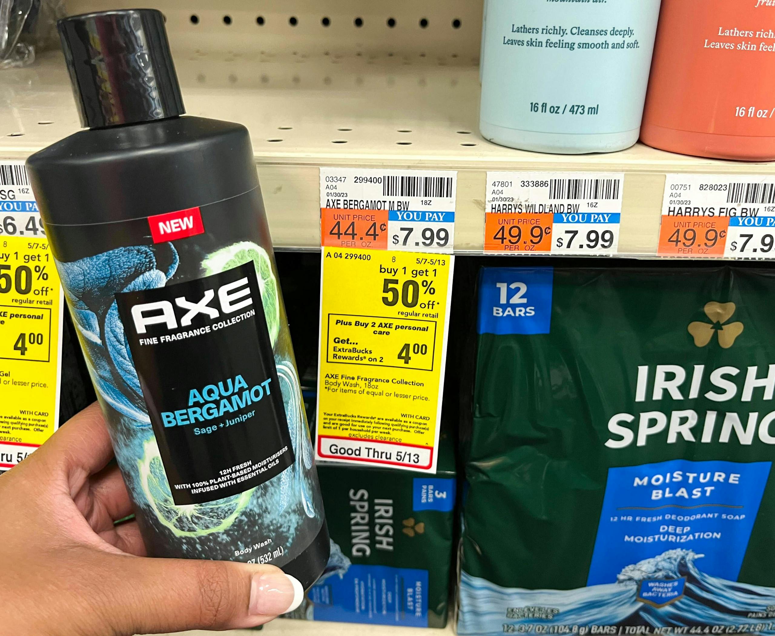 In the second scenario, you’ll use the digital coupon and pay $2.24 for two of the original Axe body washes. You’ll receive $4 in ExtraBucks, making your final total a $1.76 moneymaker. Please note that this has been a popular deal since last week, so you may find low stock or empty shelves at your store. This deal is available through May 13 or until the Ibotta offer disappears.