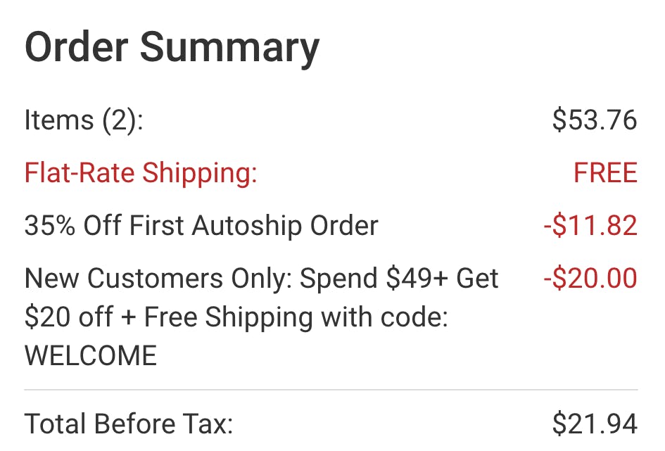 Our favorite new customer offer is back at Chewy.com. For a limited time, you’ll save $20 on your order of $49+ if you’re new to Chewy. To get the deal, use code WELCOME at checkout. I put together a few examples of great savings with totals as low as $24.69, and you’ll notice the code is even stackable with other offers like 35% off your first auto-ship and more.