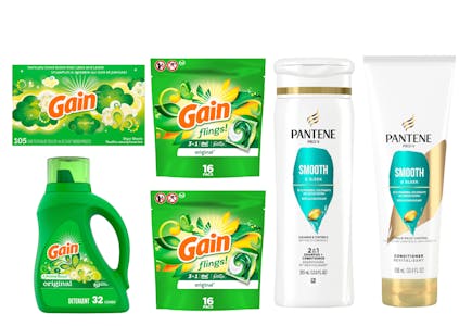 Purchase one 50-ounce Gain liquid laundry detergent, two 16-count Gain Flings packs, one pack of Gain dryer sheets, and one Pantene shampoo and one conditioner. Use all of the applicable coupons above and pay $25.96. Reaching the $20 threshold will qualify you to receive $5 in ExtraBucks and submit this form for a $5 prepaid card from the P&G rebate offer. You’ll also earn $4 in ExtraBucks for purchasing two Pantene hair care products. After factoring in all rewards, your final total is $11.96 for six products, which comes out to $1.99 each.