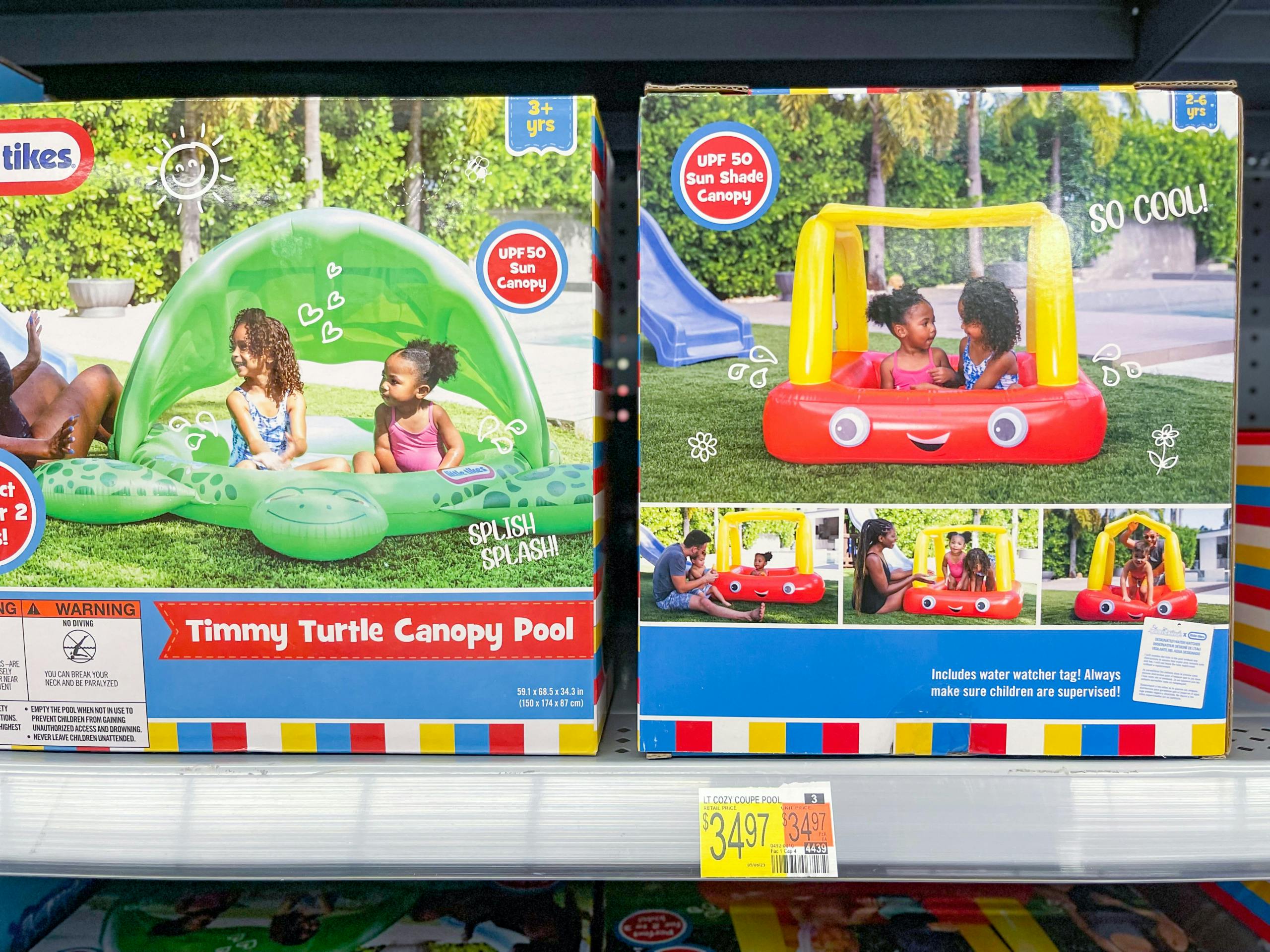 “This Little Tikes cozy coupe float is so cool! My 1 year old nephew even loves to play with this float when its not even in the swimming pool, of course under adult supervision at all times. There are so many great features from the amazing quality to the mini coupe design of this float to the shade to keep the hot sun off the baby. This is truly the perfcet float for your toddler. The steering wheel actually turns and the horn actually honks!! Isnt that the coolest!”