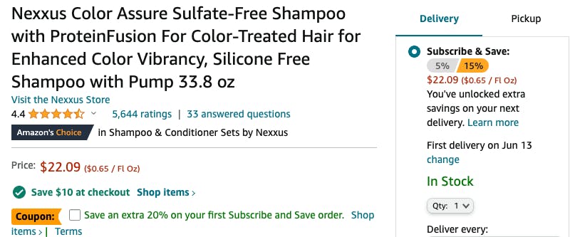 Pay as low as $6.89 for the 33.3-ounce shampoo bottle. Order right away — this won’t last long.