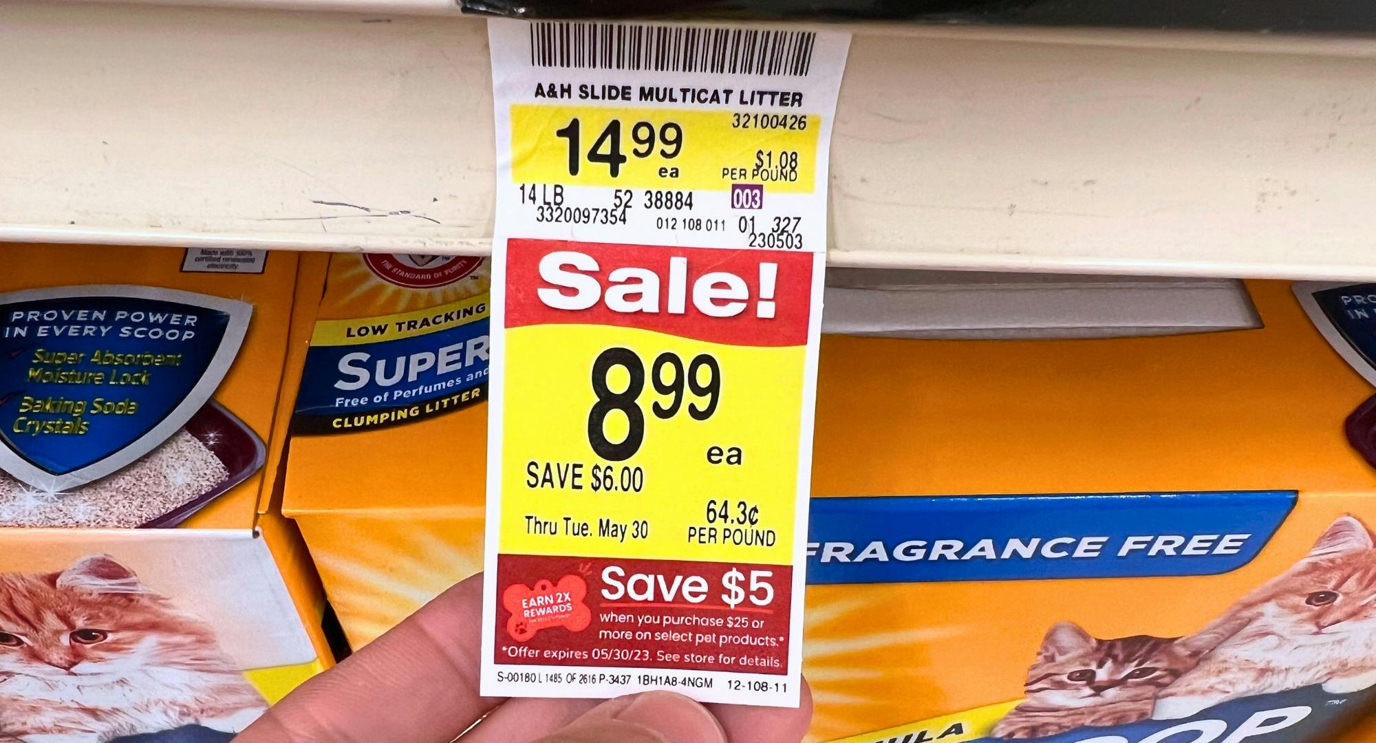 Albertsons has this litter on sale for $8.99. Plus you’ll automatically save $5 at checkout when you spend $25 or more on pet products. For the best deal, buy four boxes and pay $30.96 out-of-pocket after the automatic $5 deduction. Then be sure to submit your receipt to Swagbucks and get a $24 credit, making your final price just $6.96, or $1.74 per box.