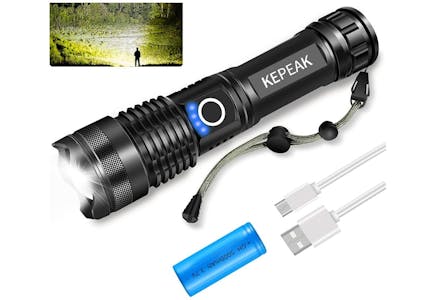 You’ll pay just $11.99 for one tactical, waterproof LED flashlight. It’s also rechargeable, so you won’t have to worry about constantly buying batteries.